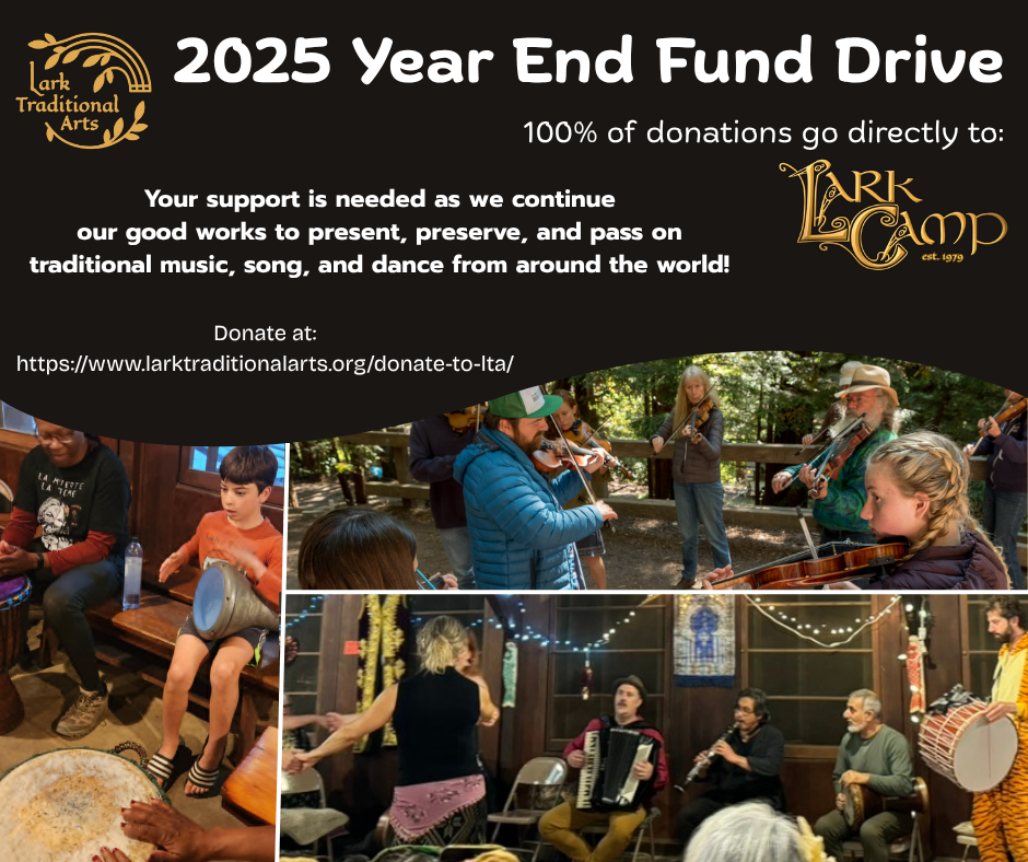LTA began primarily to ensure the continuation of Lark Camp, an 8-day traditional music, song, and dance educational event held annually in the Mendocino Woodlands. Now, six years and one global pandemic later, LTA has carefully grown.
