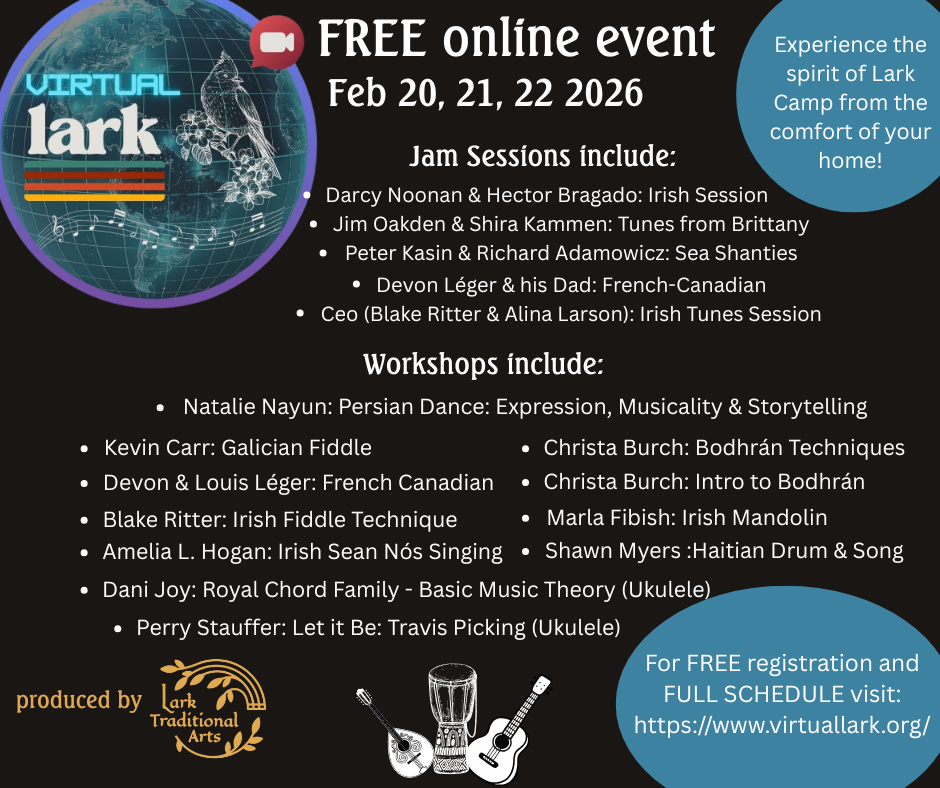 “The mission of Lark Traditional Arts is to present, preserve, and promote traditional music, song, and dance by engaging culture-bearing artists and creating educational opportunities that bring communities together in our shared worlds of music.”